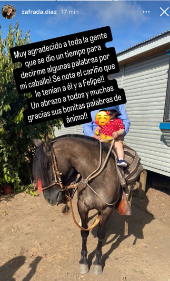 Tras informar la noticia, por medio de sus historias de Instagram, 'Zafrada' señaló lo siguiente: "Muy agradecido a toda la gente que se dio un tiempo para decirme algunas palabras por mi caballo. Se nota el cariño que le tenían a él y a Felipe".