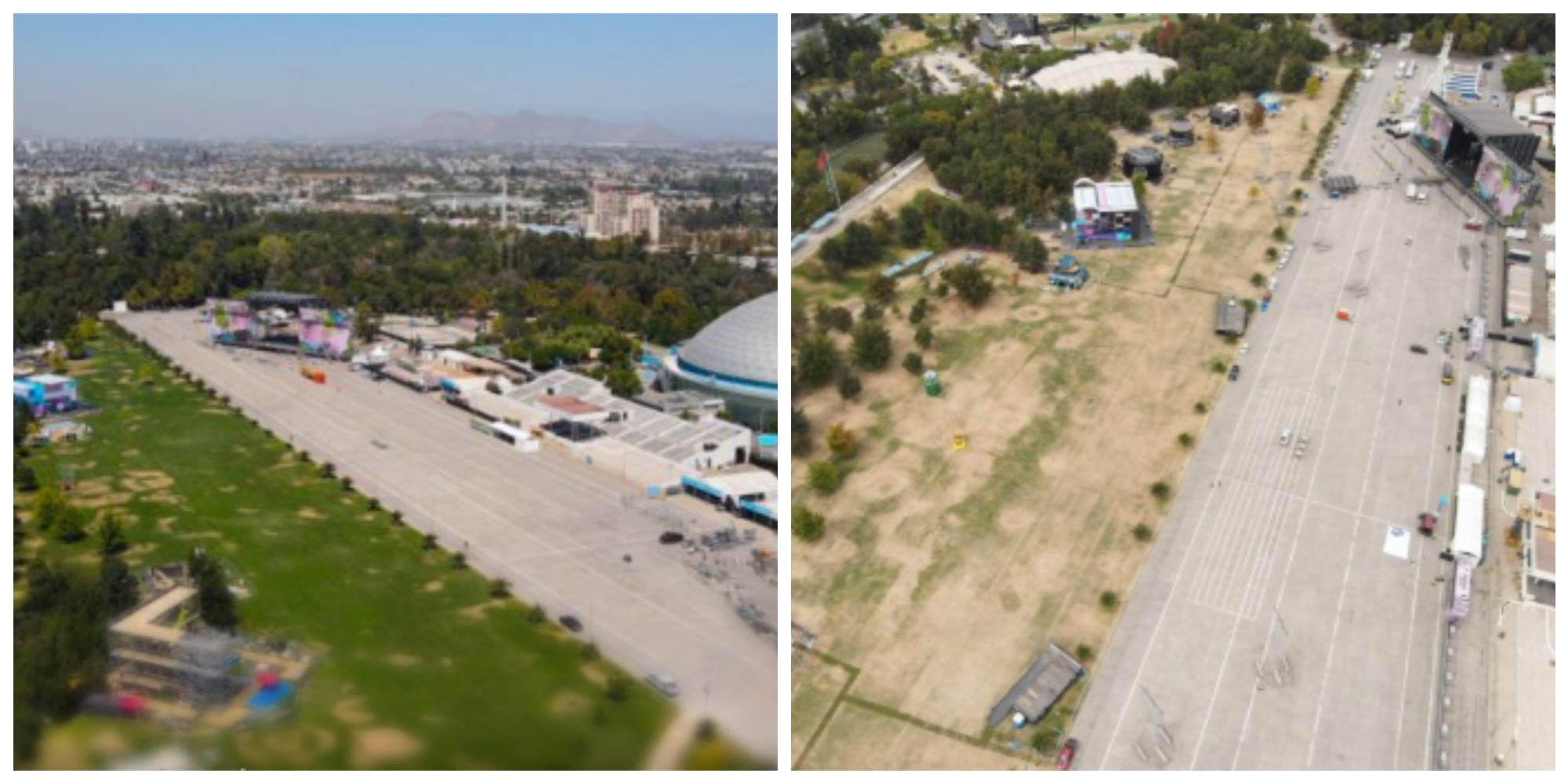 Aunque todo salió como se esperaba, algo llamó la atención y es que el recinto no quedó como estaba antes de empezar el evento. Solo bastaron tres días para que el parque quedara con graves daños; así lo constató The Clinic que tomó fotografías del antes y después.