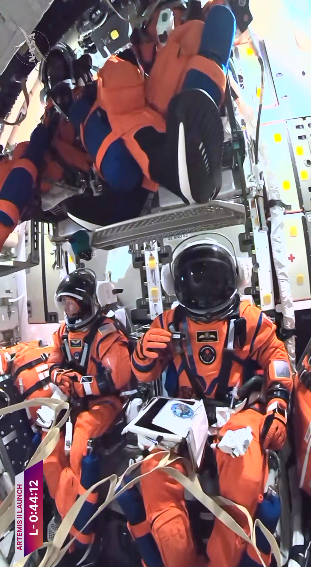 The Artemis II astronauts, now suited up for launch, are headed to the launch pad.